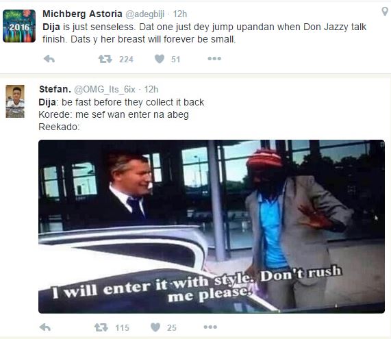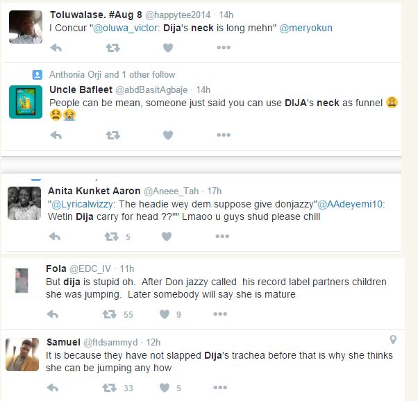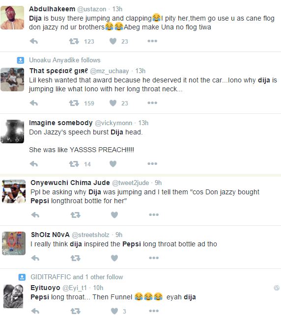 Dija is currently trending on Twitter. Nigerians have been teasing the female artiste in diverse ways.