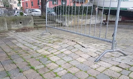 A barrier is placed over the uneven stones in a bid to prevent pedestrians walking over it.