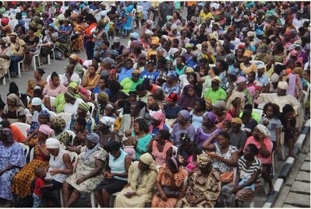The church officials were stunned by the massive turn-out of people who shared smiles as they parted with material gifts.