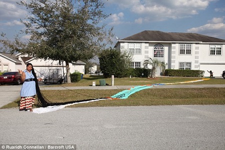 Asha has locks that measure a lengthy 55ft - longer than a London bus. Now the 50-year-old, from Florida, has found a match made in heaven with new husband, Emmanuel Chege, a qualified hair stylist from Kenya.
