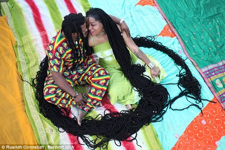The smitten couple mutually worship each other's bountiful barnets and say that their beautifully maintained dreadlocks are their crowning glory.