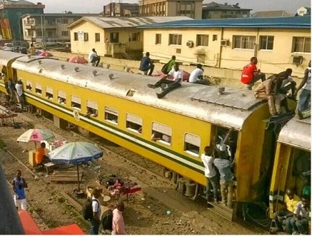 Some Lagosians were pictured sitting on top of a fast-moving train which is highly dangerous as they get easily thrown off the train in the course of movement.