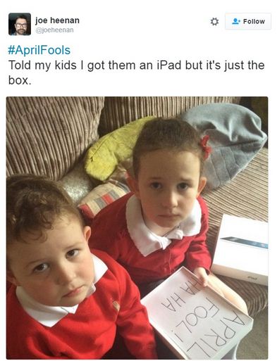 The kids apparently not pleased with the April Fools' day prank reacted by giving their dad an unforgiving look which has been described as 'the classic stare' by some social media users.