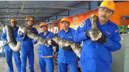 The huge python found by workers on a construction site in Malaysia could be the longest snake ever caught.