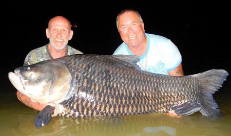 The unusual blended bait was so powerful it even helped the two snare a whopping 12stone Siamese carp - one of the biggest carp fish ever caught in the world.